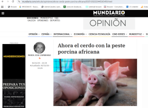 Por si no fuera poco, la alerta sobre gripe aviar y las consecuencias económicas y de comercio que estamos sufriendo en la actualidad, nos aparece hace escasos días la alerta de la peste porcina africana… ¿alguien dá más?, crucemos los dedos para que no aparezcan casos de vacas locas.