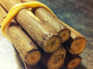 El palodú, también conocido como palo dulce o raíz de regaliz, es un trozo de raíz de la planta Glycyrrhiza glabra. Tradicionalmente se consume masticando o chupando el palo, ya que su sabor es naturalmente dulce. Desde hace muchos años se utiliza tanto como golosina natural como en la medicina tradicional por sus propiedades saludables.